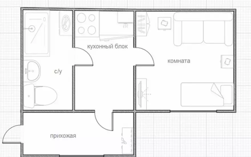 - Санузел: Совмещённый