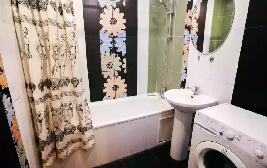 Через дорогу автобусная остановка, супермаркет "Магнит", сбербанк. Рядом с домом большая просторная автостоянка. Можем встретить и проводить вас и ваших гостей на личном автомобиле совершенно бесплатно, а также уборка квартир и замена постельного белья, полотенец в период проживания проводится бесплатно (по вашему требованию).