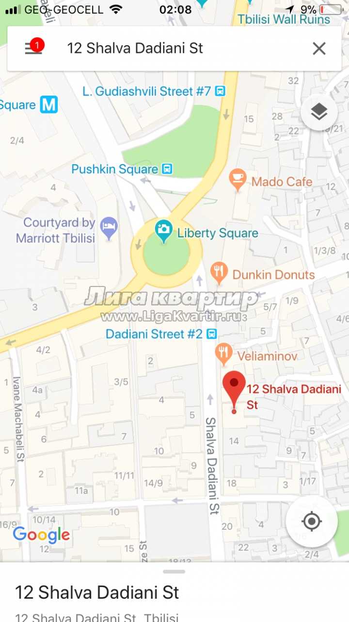Эта квартира расположена в одной из самых привлекательных, в центральной части старого города. Гости могут прогуляться по знаменитой крепости Нарикала, где они могут насладиться лучшими видами старого Тбилиси и после отдохнуть в квартире в недавно обновленном районе города. Квартира находится менее, чем в 5 минутах ходьбы от улицы Шардени, который славится своими барами, ресторанами и ночными клубами. Эта квартира на 2 человек, на третьем этаже дома. Она имеет одну комнату с удобной двуспальной кроватью и соединена с полностью оборудованной кухней, оснащенной для приготовления в домашних условиях. Это действительно туристическое место, так как все туристические маршруты проходят через проспект Руставели, и площадь Свободы. Всего в двух шагах вы можете найти Банки и Банкоматы, сувенирные магазины, пекарни, рестораны, и широкий выбор грузинской кухни. Большой супермаркет Populi и GTC Торговая площадь находятся в нескольких минутах ходьбы.