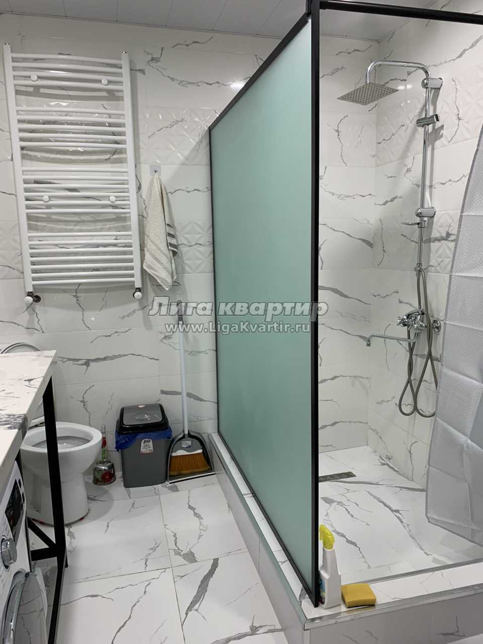 - В квартире: Мебель в комнатах / Мебель на кухне / Холодильник / Стиральная машина / Интернет / Телевизор / Ванна / Можно с детьми / Можно с животными / Кондиционер / Телефон / Душевая кабина