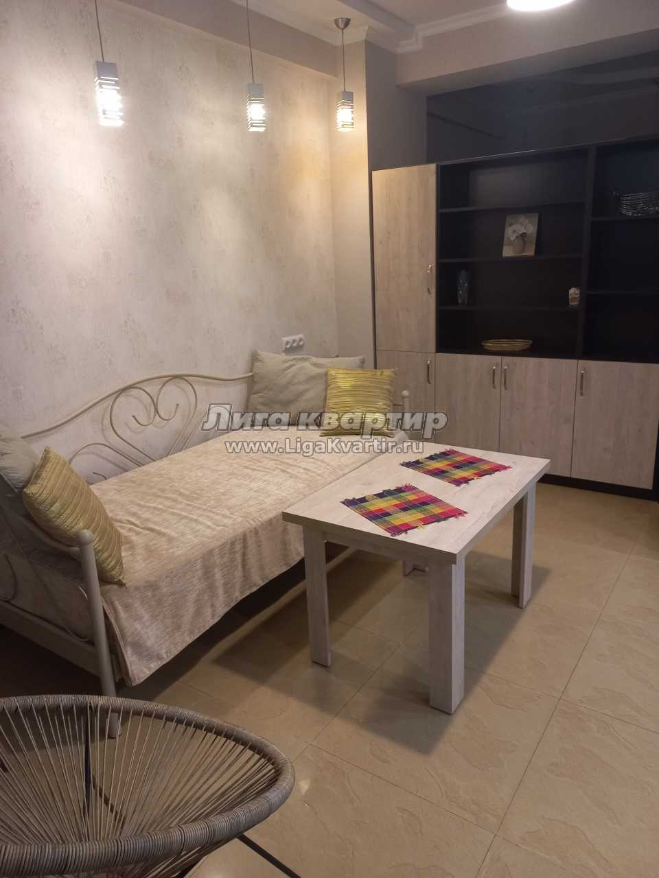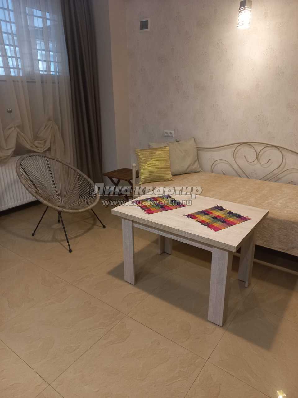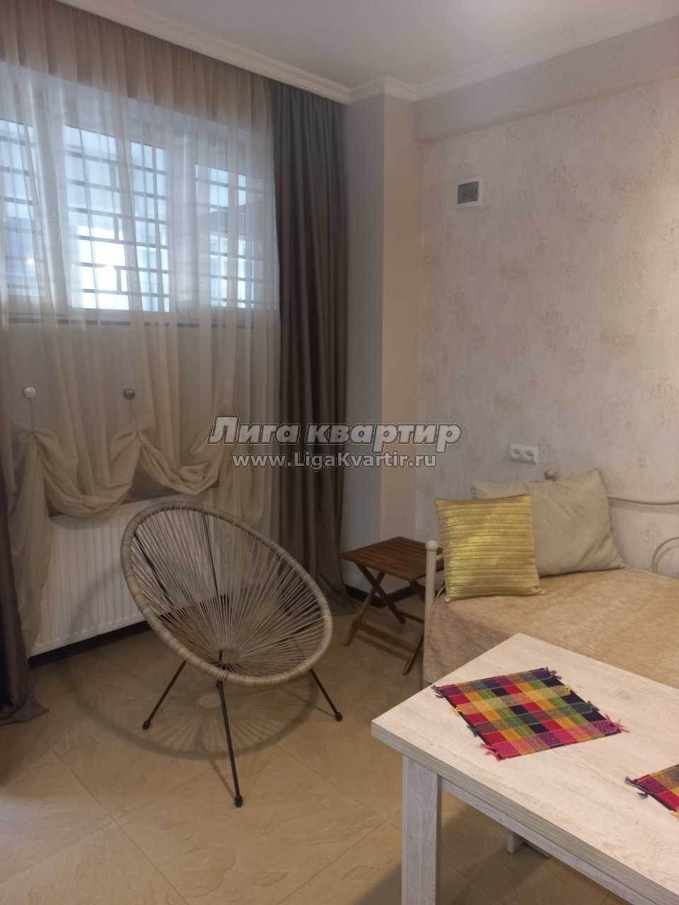 Сдается чистая и уютная ново-отремонтированная квартира типа студии в новостройке. В квартире есть все удобства для комфортабельного проживания: интернет Wi - Fi, плазменный телевизор, кабельное телевидение, центральное отопление, новая мебель, холодильник, стиральная машина, кухонные принадлежности, горячая и холодная вода, полотенца и постельное белье Квартира находится в экологически чистом районе города - Сабуртало, поблизости супермаркета сети Goodwill, корпус расположен прямо рядом со станцией метро Важа Пшавела и автобусной остановкой. В 10 минутах прогулки от квартиры находятся также национальные рестораны, парки, кафе, фитнес клуб. В 15 минутах езды от квартиры находится центр города.