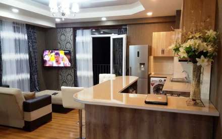 - В квартире: Мебель в комнатах / Интернет / Можно с детьми / Мебель на кухне / Телевизор / Холодильник / Кондиционер / Стиральная машина / Ванна