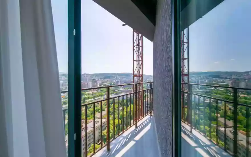 – балкон с красивым видом на реку и город
