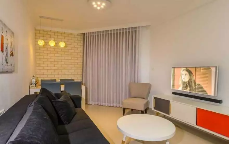 В зоне отдыха установлен просторный диван со множеством подушек, трансформирующийся в уютное спальное место. Квартира идеально подойдет для пары или 3 человек. Стоимость включает комплект постельного белья и полотенца. При необходимости можно заказать трансфер от/до аэропорта за дополнительную плату.