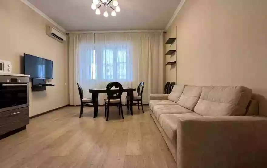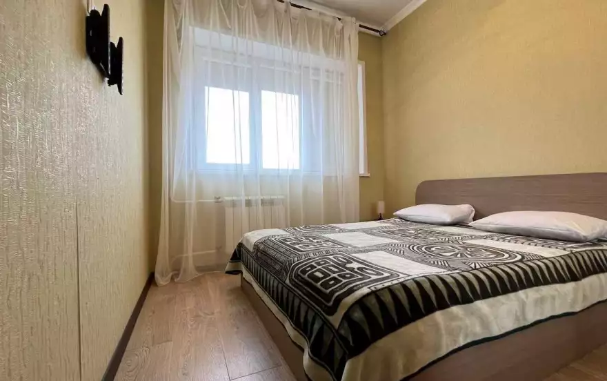 Просторная трехкомнатная квартира, оборудованная всем необходимым, общей площадью 72 кв.м, расположена на 8 этаже 9-ти этажного доме. В квартире два балкона с видом на город.