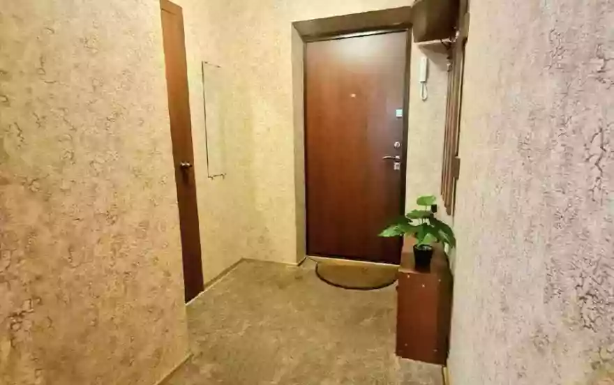 Гостям предлагаем чай, средства гигиены и тапочки. Двуспальная кровать и двуспальный диван, шкафы, комод, кухонный стол, журнальный стол, кухонный гарнитур, плита с духовкой, ЖК-телевизор, чайник, холодильник, микроволновка, посуда, кухонные принадлежности, утюг с гладильной доской, сушилка для белья, фен, стиральная машинка, бойлер, постельное бельё, полотенца. Установлена хорошая металлическая дверь, есть домофон.