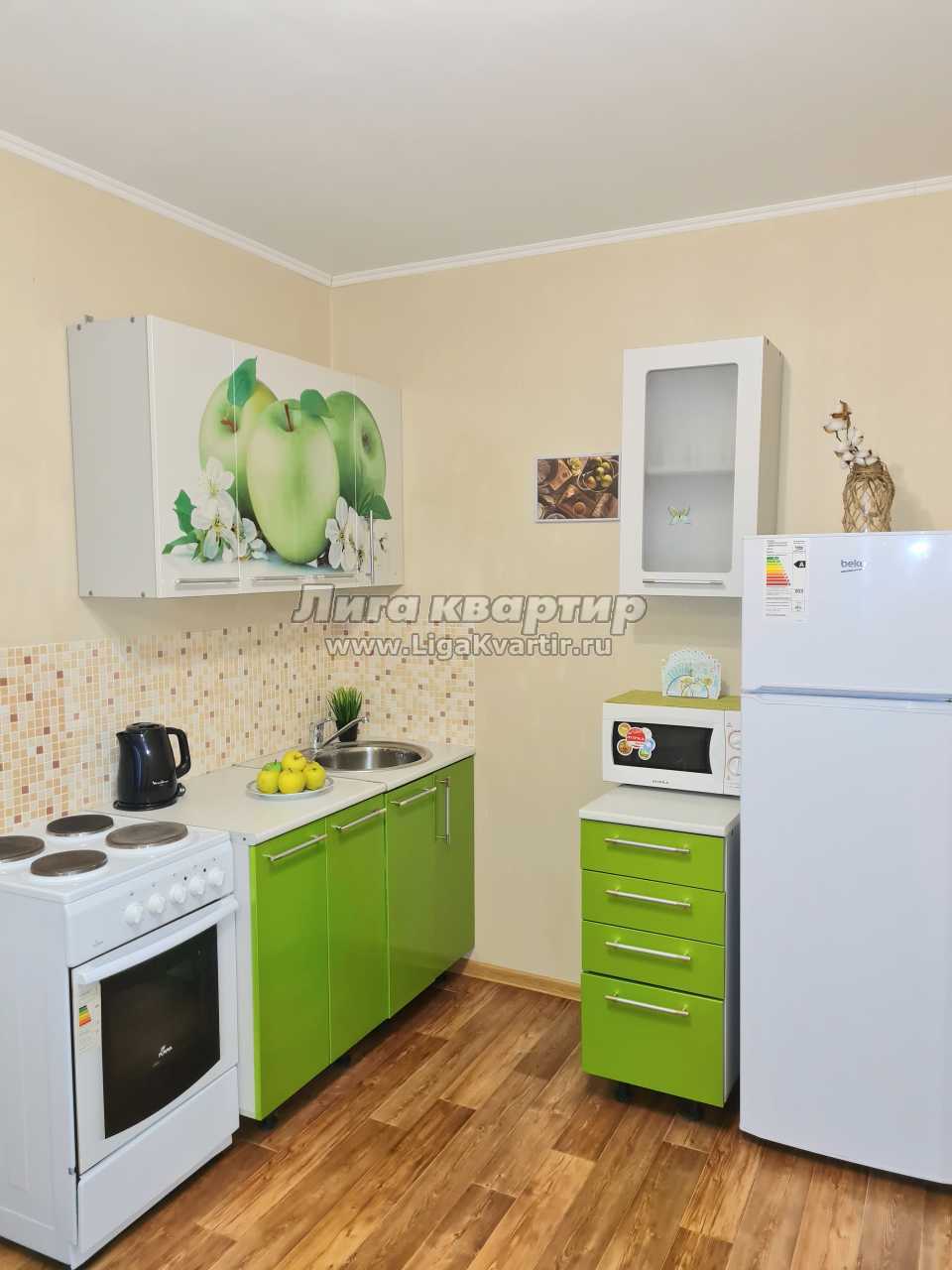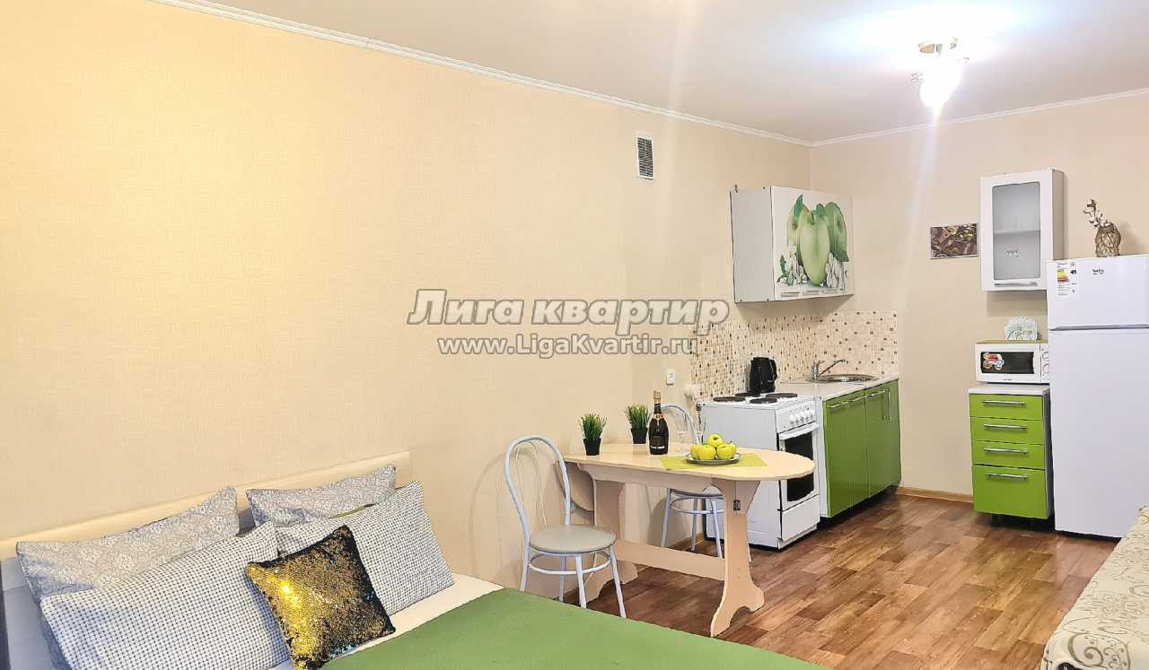 Квартира-студия с евроремонтом на ночь, сутки. Есть остекленный балкон. Вся мебель, кухонная посуда и бытовая техника новые. WiFi.