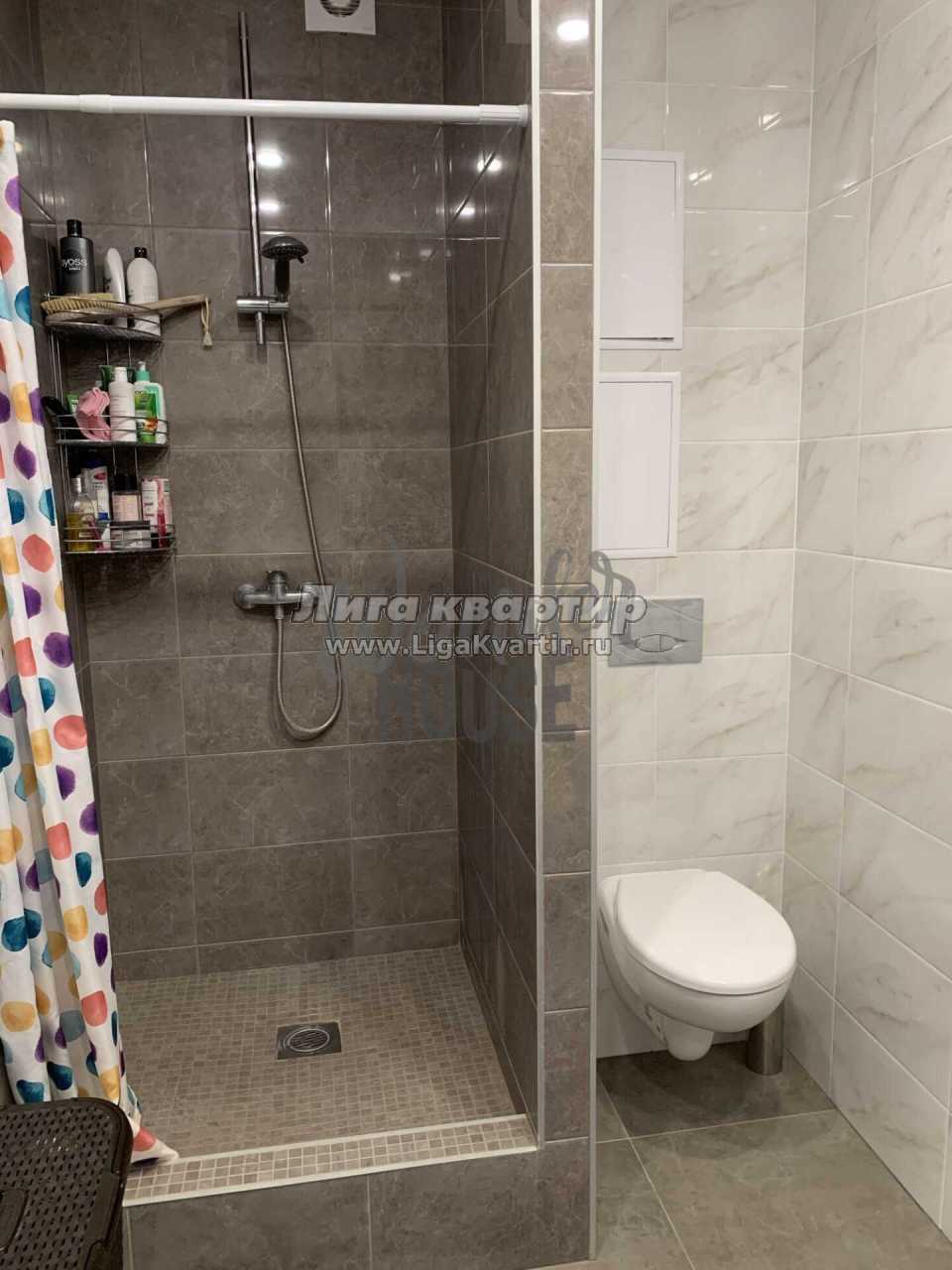 В душевой установлен водонагреватель на случай отключения горячей воды.