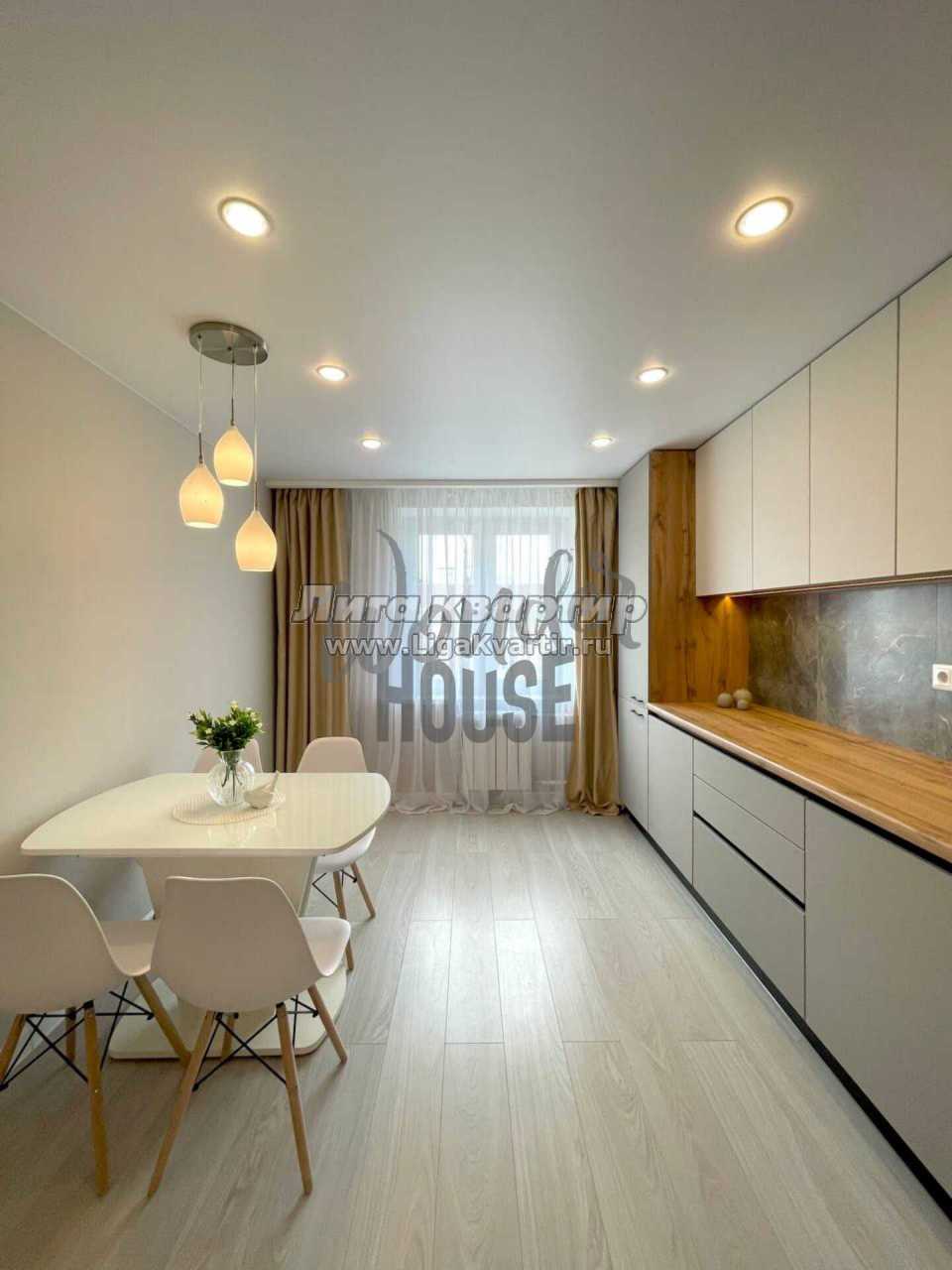В квартире выполнен современный, качественный ремонт. На полу уложен ламинат, натяжные потолки с системой освещения. Установлены качественные межкомнатные двери. Раздельный санузел, облицован кафелем.