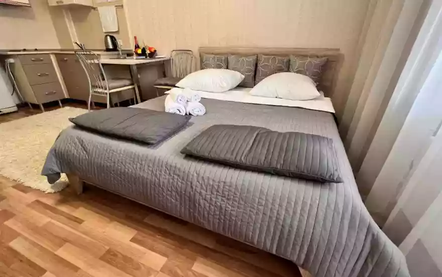 Квартира оборудована всем необходимым для комфортного проживания. Чистое белье, средства гигиены. Посуда для приготовления пищи. Для вас квартиру подготавливают наши опытные горничные. Белье проходит стирку в нашей прачечной.