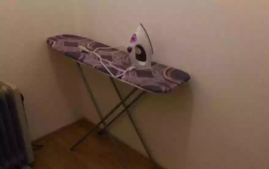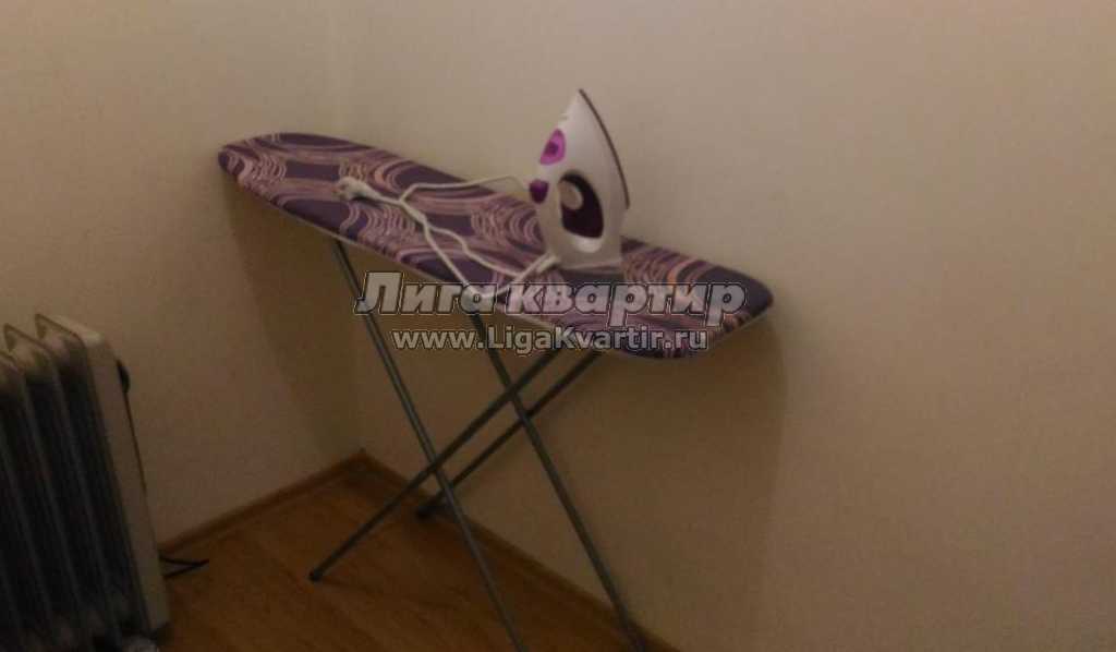 Постельное белье, полотенца, гели, шампуни, утюг, гладильная доска, сушилка для белья.