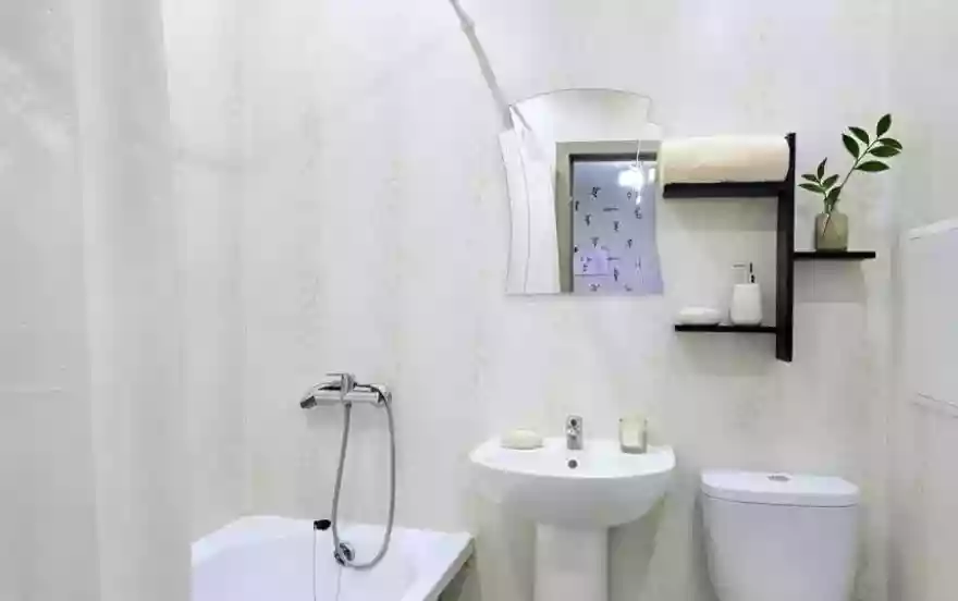 Санузел: Санузел совмещённый. Здесь ванна, раковина, стиральная машина, фен. Горячая вода централизованная, но весной и летом во время ремонтов возможны отключения — учитывайте, пожалуйста.