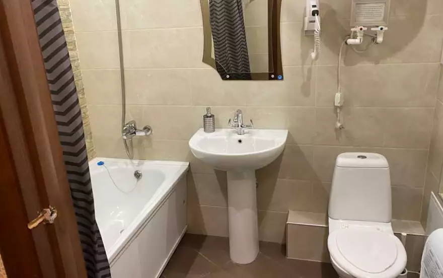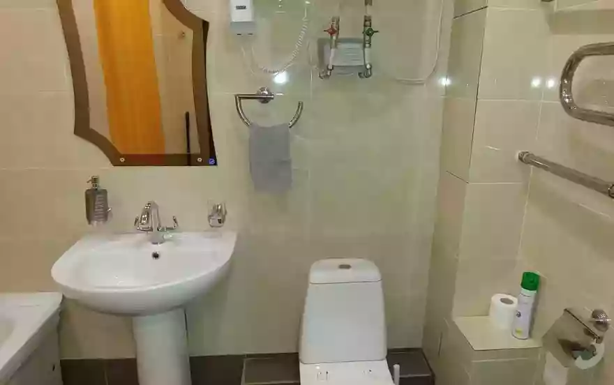 В квартире не бывает проблем с горячей водой, так как имеется водонагреватель. Квартира удобно расположена для тех, кому потребуется добираться в аэропорт или железнодорожный вокзал. В соседнем доме продовольственный супермаркет. Не далеко аквапарк «Улёт» и картодром.