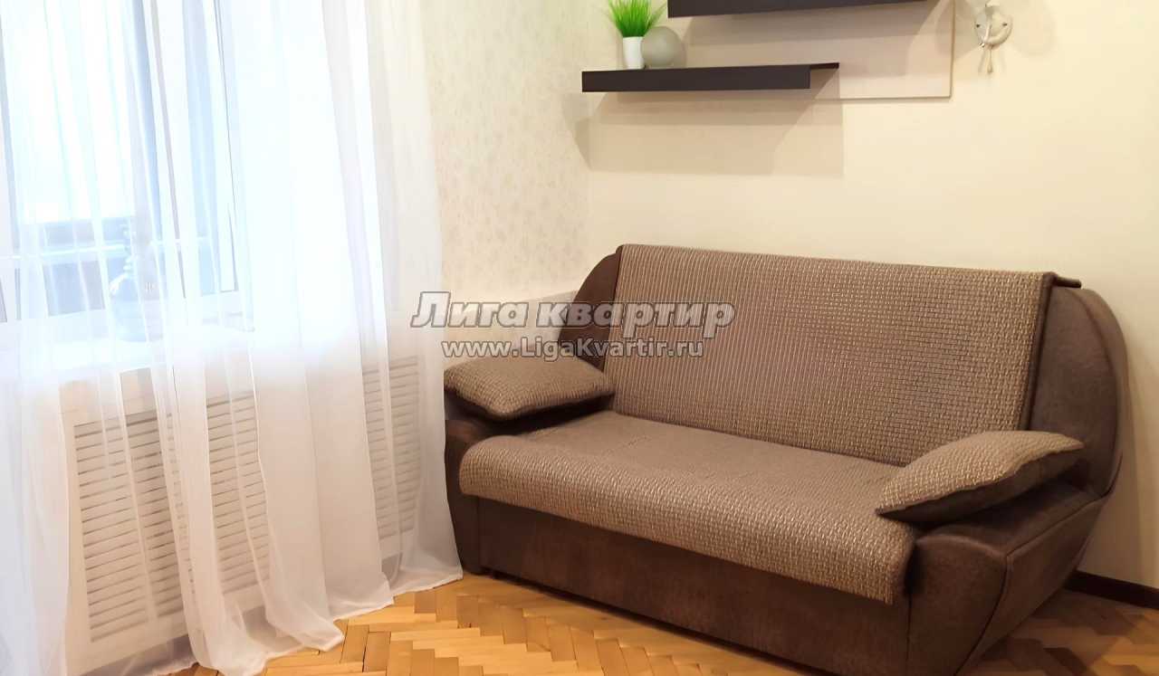 Спальные места расположены в одной комнате - двуспальная кровать, помещенная в нишу, а также раскладывающийся диван.