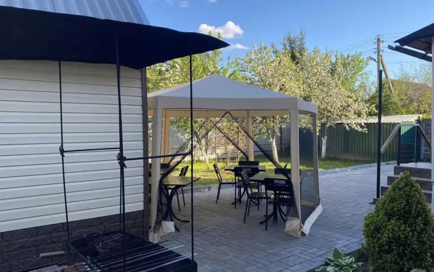 В кухонной зоне имеется холодильник, газовая плита с духовым шкафом, микроволновая печь, электрочайник. На территории беседка, мангальная зона (шампура), стоянка для 10 машин.
