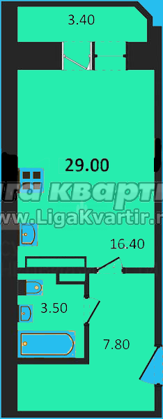 - Общая площадь: 28.8 м²