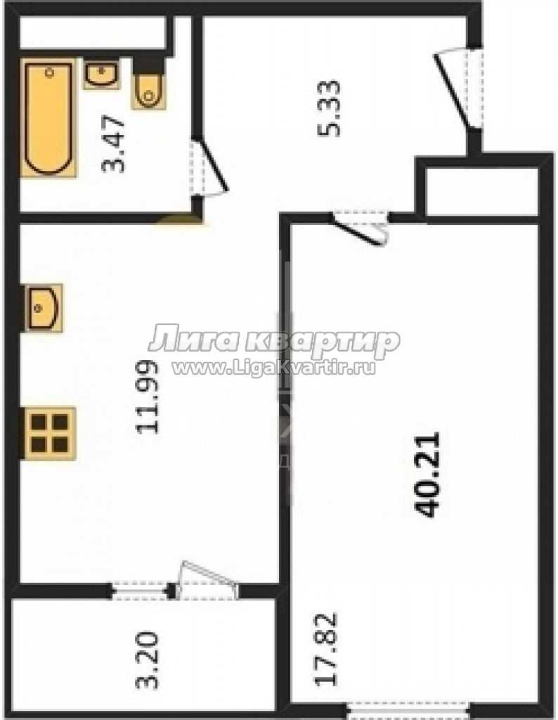 - Жилая площадь: 17.82 м²