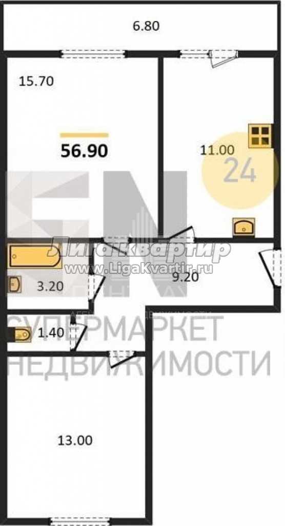- Жилая площадь: 28.7 м²