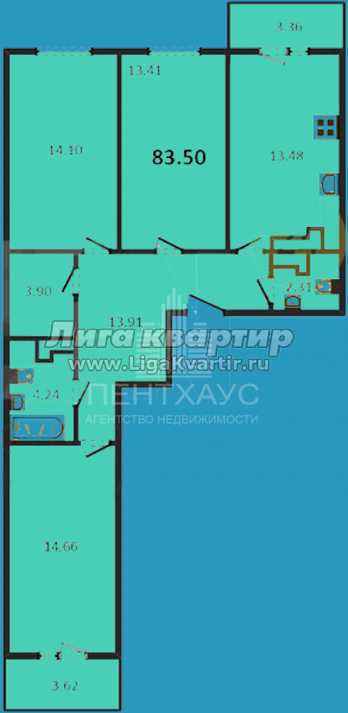 - Общая площадь: 83.5 м²