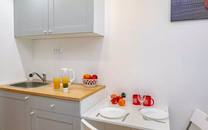 В студии собственный санузел и душ, кухня с необходимой посудой и техникой!