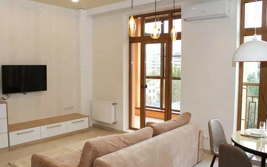 Удобства в квартире: новая мебель и бытовая техника: кондиционер, плоский телевизор, кабельные каналы, есть Wi-Fi.
