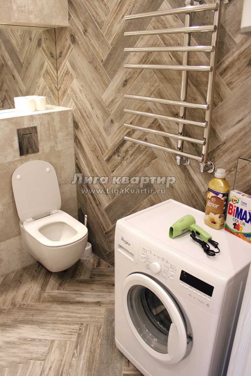 Ванная комната: душ, ванна, стиральная машина, фен, полотенца, туалетные принадлежности. Также имеется: утюг с гладильной доской, сушилка для белья.