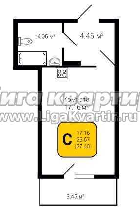 - Общая площадь: 27.4 м²