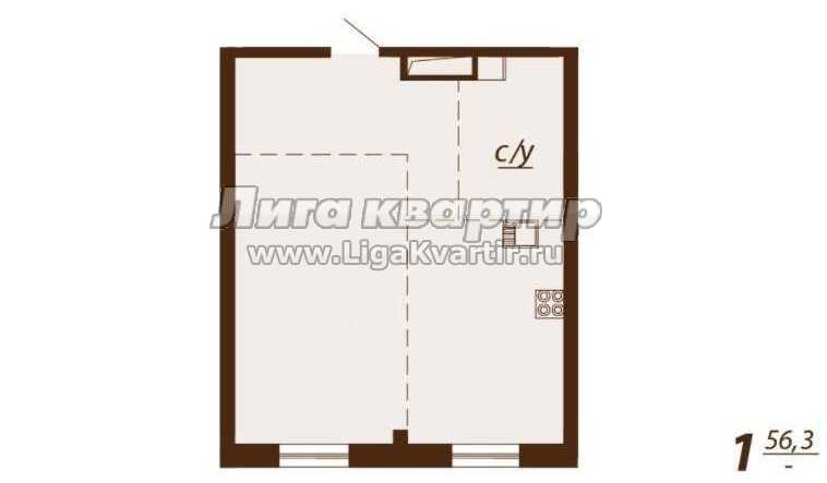 - Общая площадь: 56.3 м²