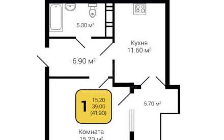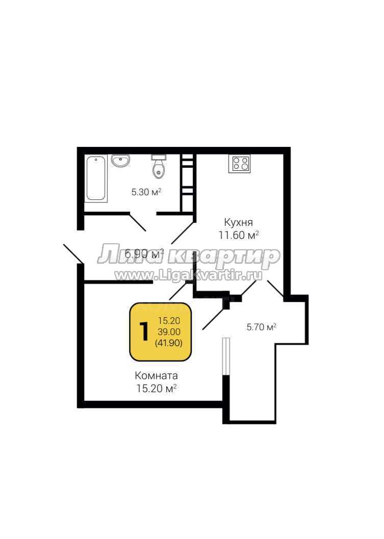 - Общая площадь: 41.9 м²