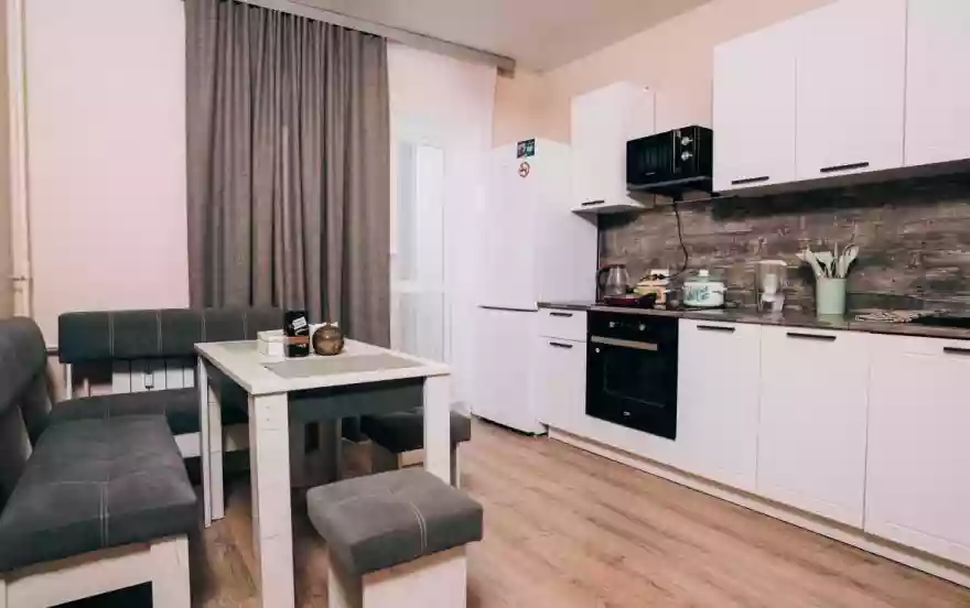 Фотографии квартиры реальные, евро-ремонт, кабельное ТВ, интернет (Wi-Fi), кухня оборудована всем необходимым для приготовления пищи (посуда, столовые приборы), фильтр для воды, СВЧ-печь, электрический чайник, также в квартире всегда есть кофе, чай, сахар. Ванные принадлежности: гель для душа, гель для рук, зубные щетки, зубная паста, освежитель воздуха, туалетная бумага. Постельные принадлежности: комплект постельного белья, полотенца. Фен, утюг, гладильная доска, сушилка.