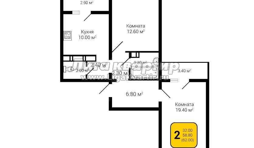 - Общая площадь: 62 м²