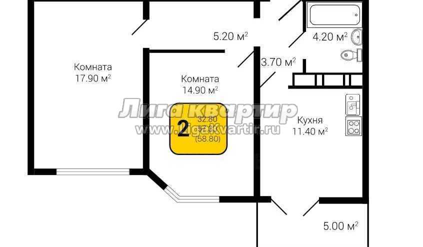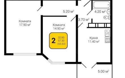 - Общая площадь: 59.1 м²
