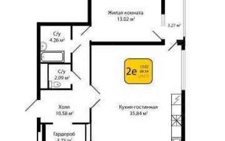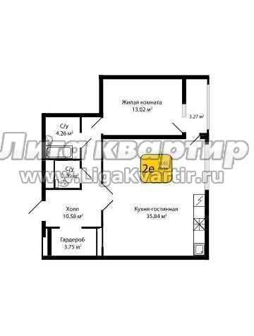 - Площадь кухни: 35.84 м²