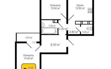 - Жилая площадь: 32 м²