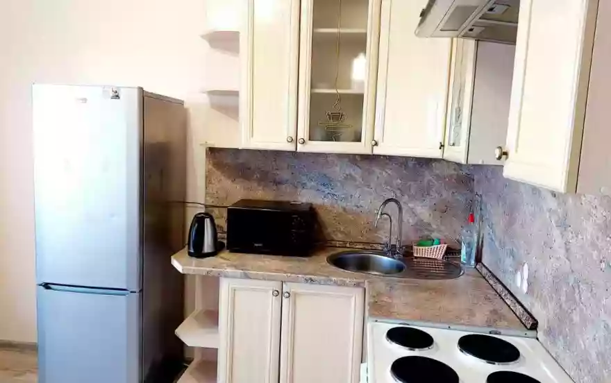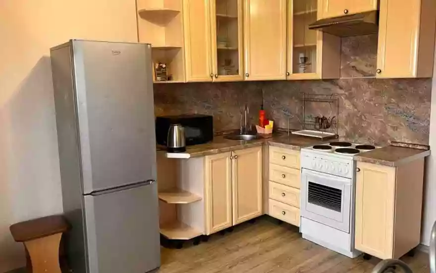 ✅️ техника: холодильник, стиральная машина, микроволновая печь, утюг с гладильной доской, электрический чайник, фен, вентиляторы.
