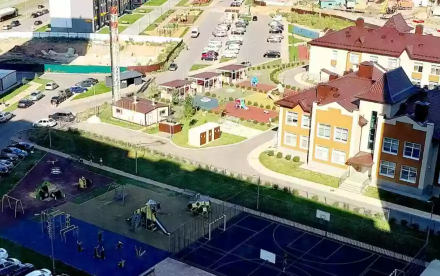 Благоустроенный двор, парковка