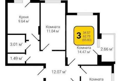 - Количество комнат: 3
