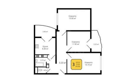 - Количество комнат: 3