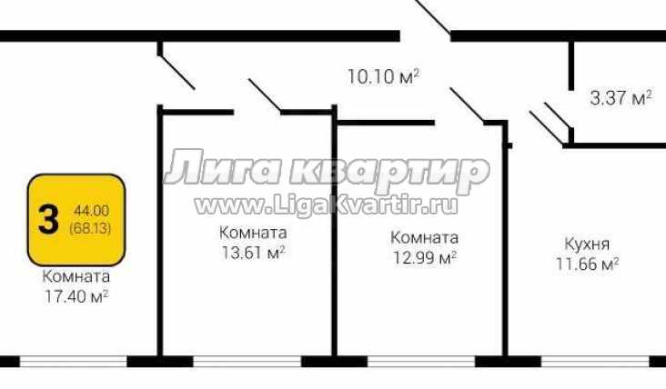 - Общая площадь: 68.13 м²