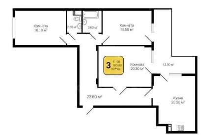 - Количество комнат: 3