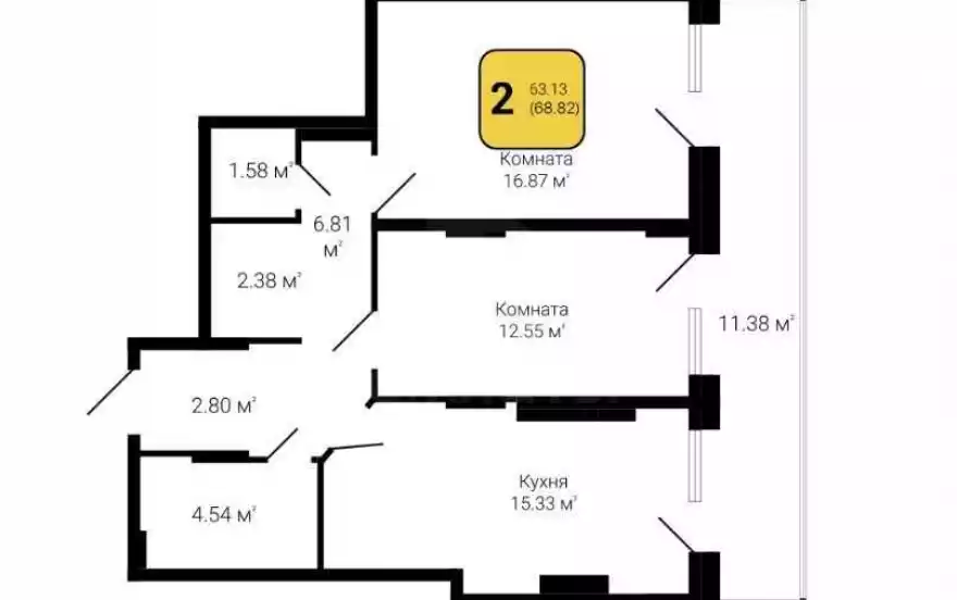 2-комнатная Площадь: 55 м2 Этаж: 3/10