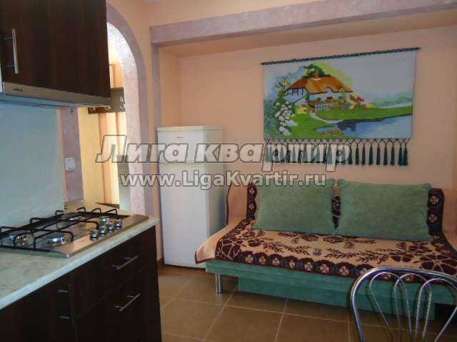 На кухне большой раскладной диван на два человека.