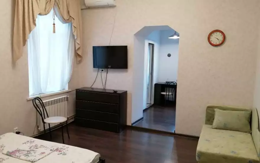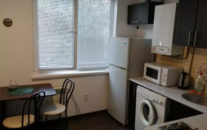 Аккуратная, чистая 1 к. квартира с хорошим ремонтом 26 кв. м. на семью 3 человека, индивидуальное отопление, ТВ спутник, WiFi, кондиционер, ст. машина, посуда, постель, небольшой балкон.