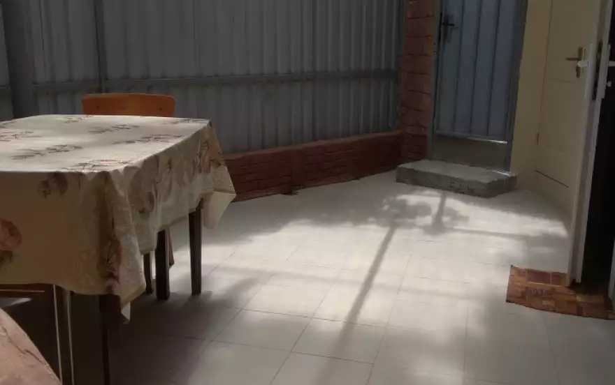 Одноэтажное строение. Две комнаты свой закрытый двор там же туалет, душ, кухня. Вода круглосуточно.