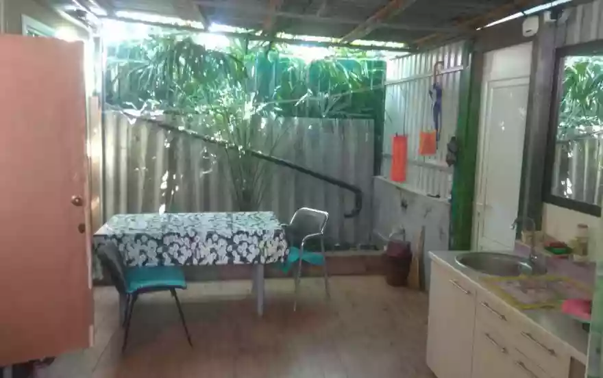 Свой закрытый двор с навесом там же туалет, душ, кухня. Вода круглосуточно.