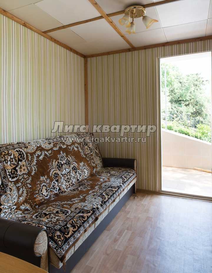 Гурзуф. На природе, в зеленой зоне деревьев, сдам скромный домик с беседкой, из двух комнат, одна из них проходная. Спальные места: диван и двуспальная кровать. В комнате стоит шкаф, тумбочка и телевизор. Материал стен - деревянная вагонка с отделкой. Кухня находится в беседке на природе. Также есть место, где можно жарить шашлыки. Парковка во дворе. До моря пешком 7-10 минут обратно 15-20 мин. Время заезда-14:00, время выезда 12:00.