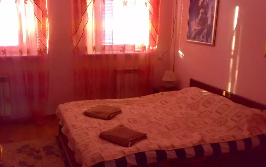 Двухкомнатная квартира комнаты раздельные Люкс. Все удобства, ТВ спутник, WIFI, теплая, котел газовый двухконтурный, кондиционер, ст. машина, есть все необходимое, парковка, постель, посуда.
