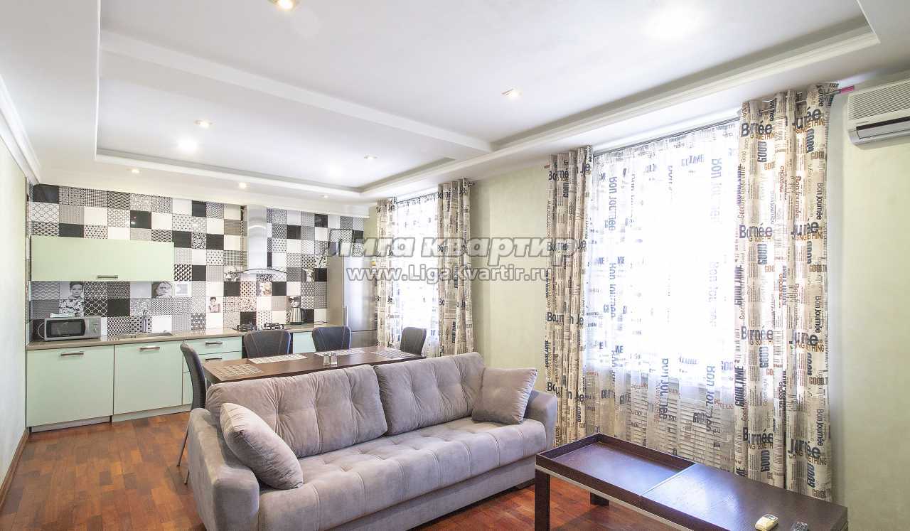 Квартира укомплектована современной мебелью европейского качества. В спальне с окнами на Сретенскую церковь большая двуспальная кровать (спальное место 160х200 см) застеленная свежим постельным бельем, шкаф-купе, книги. В гостиной - большой двуспальный диван (спальное место 160х200 см), который также имеет комплект свежего постельного белья, телевизор, большой стол и стулья. Полностью оборудованная кухонная зона с холодильником, плитой, чайником, микроволновой печью, стиральной машиной имеет весь необходимый набор кухонных принадлежностей для приготовления пищи и сервировки стола. В ванной комнате с новой сантехникой, включая биде. Вас ждут - фен, комплекты полотенец, по числу гостей, туалетная бумага.