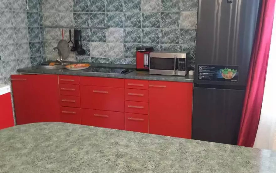 В наличии необходимая бытовая техника, холодильник, телевизор, СВЧ, стиральная машинка, утюг, ЖК телевизор, wi-fi. Полный набор посуды.