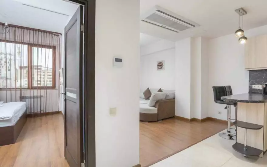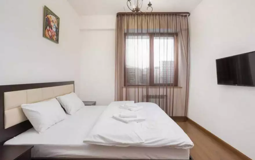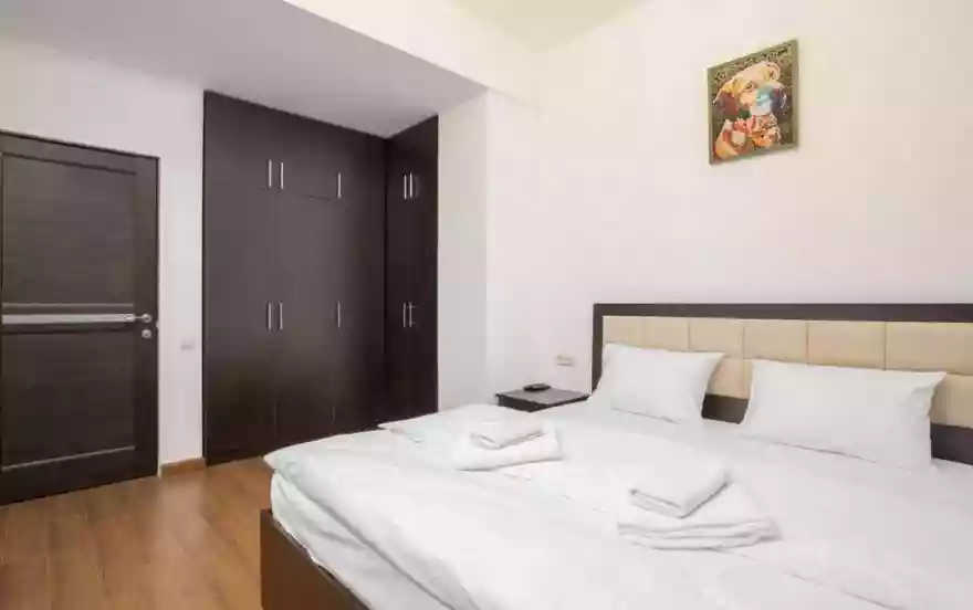 В доме охрана 24/7, есть подземный платный паркинг. Рядом Супермаркет и Обменники. До Северного Проспекта, Театра Балета и Оперы, Музея Истории Армении, Голубой Мечети всего 5-7 мин. пешком.